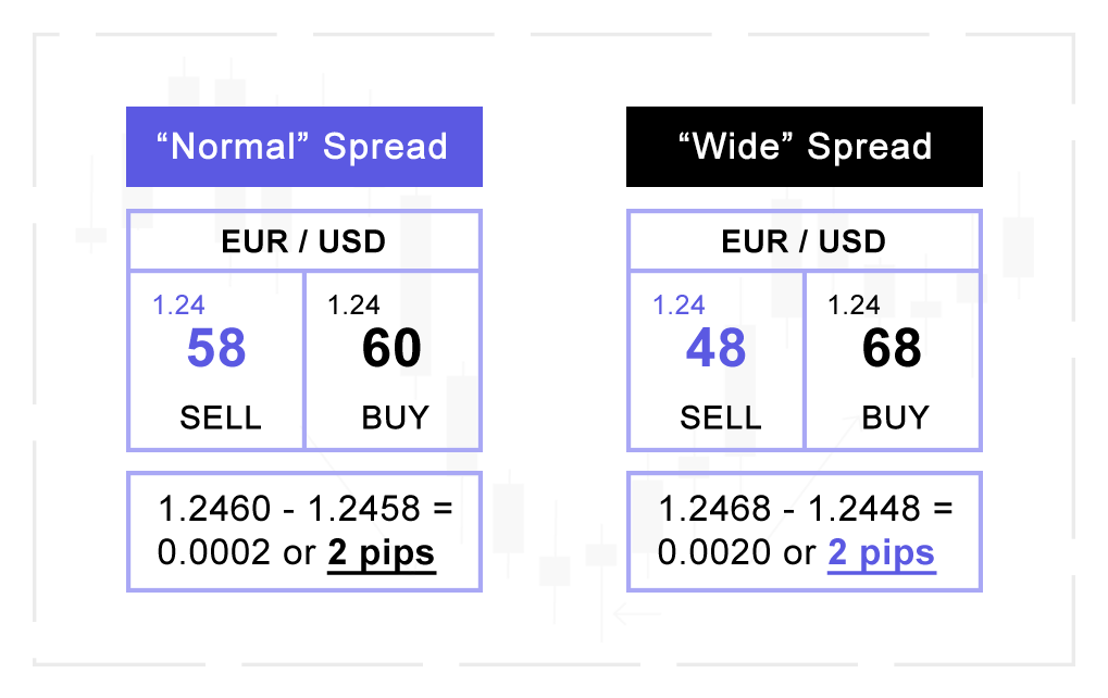 When there is a wider spread, it means there is a greater difference between the two prices, so there is usually low liquidity and high volatility. A lower spread on the other hand indicates low volatility and high liquidity. Thus, there will be a smaller spread cost incurred when trading a currency pair with a tighter spread.